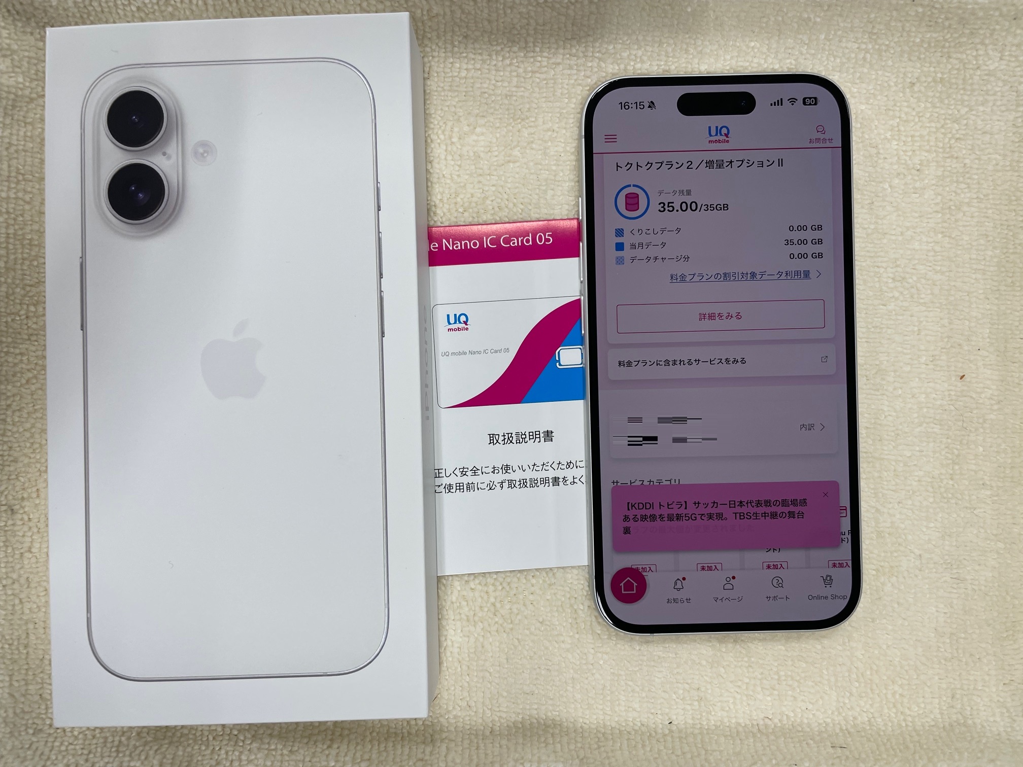 「UQ親子応援割」適用、データ移行完了後お渡しです。