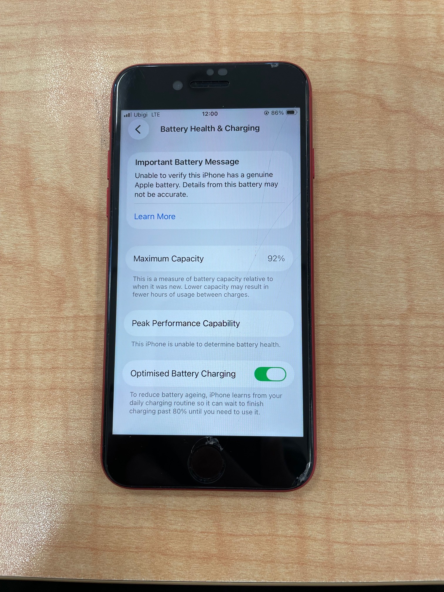 すでにコピーバッテリーに交換していた為、最大容量92%ですが持ちが悪く使いにくい状況です。