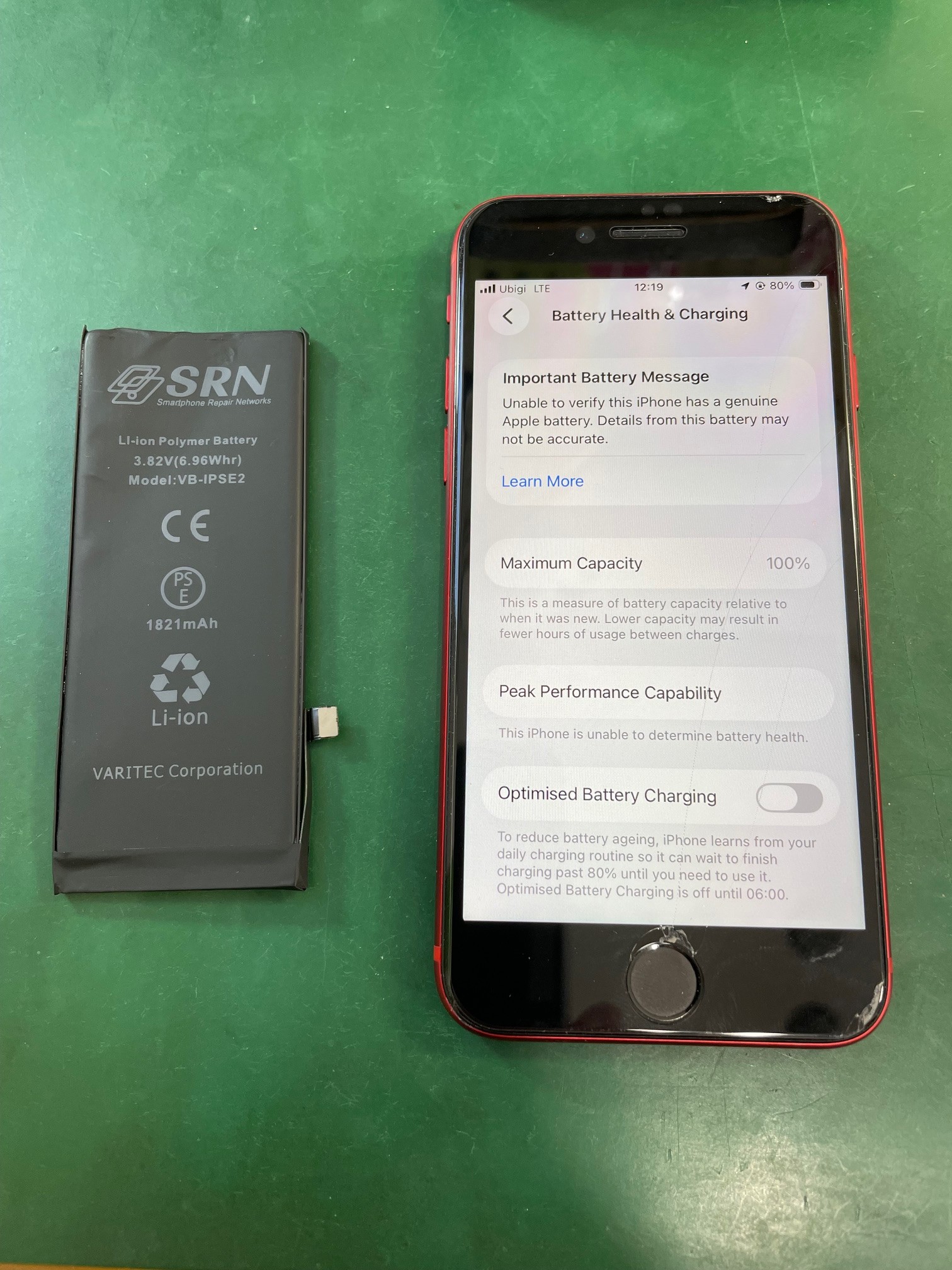 「非純正メッセージ」が出ますが、最大容量100%に改善、お渡しです。