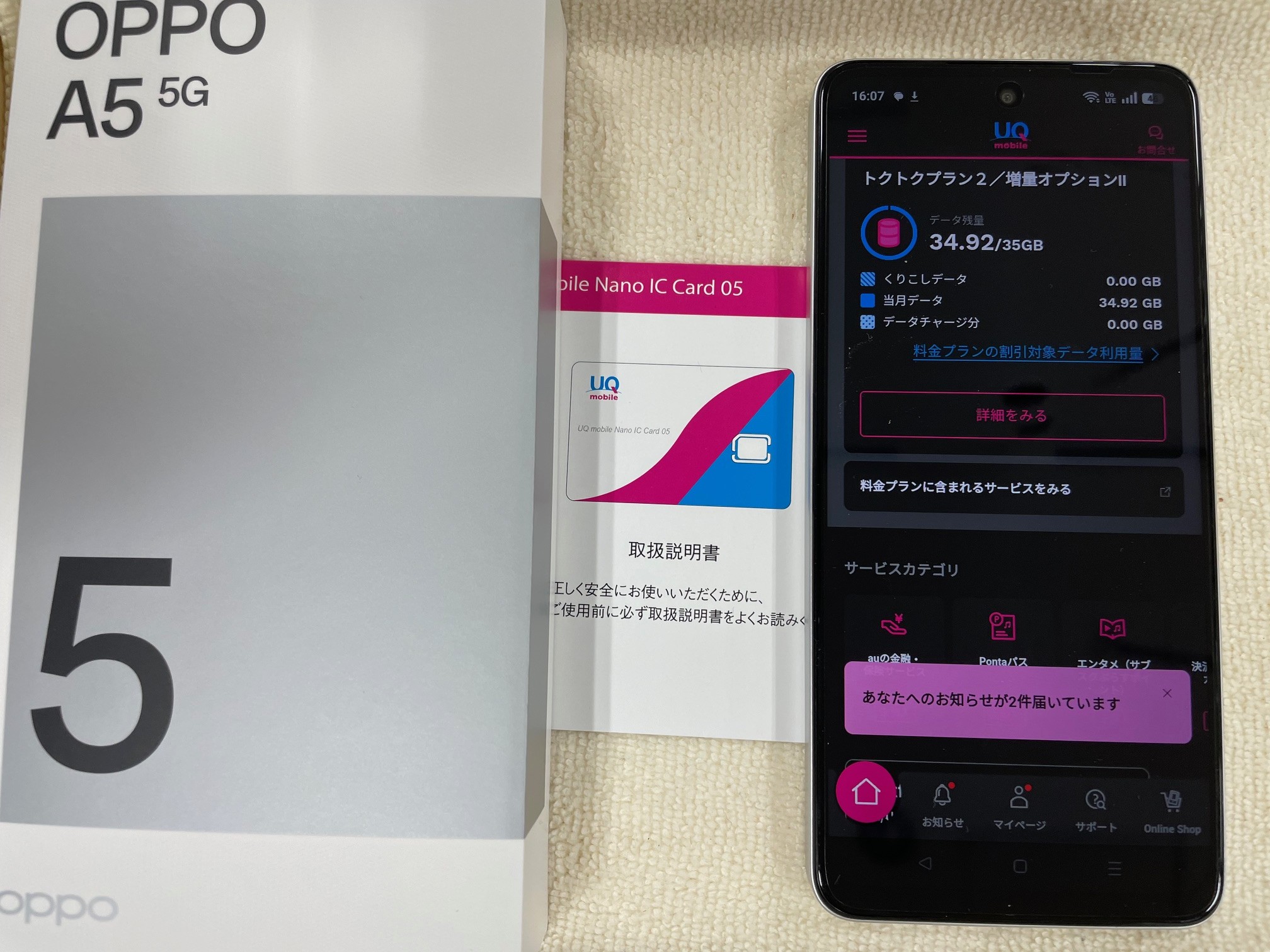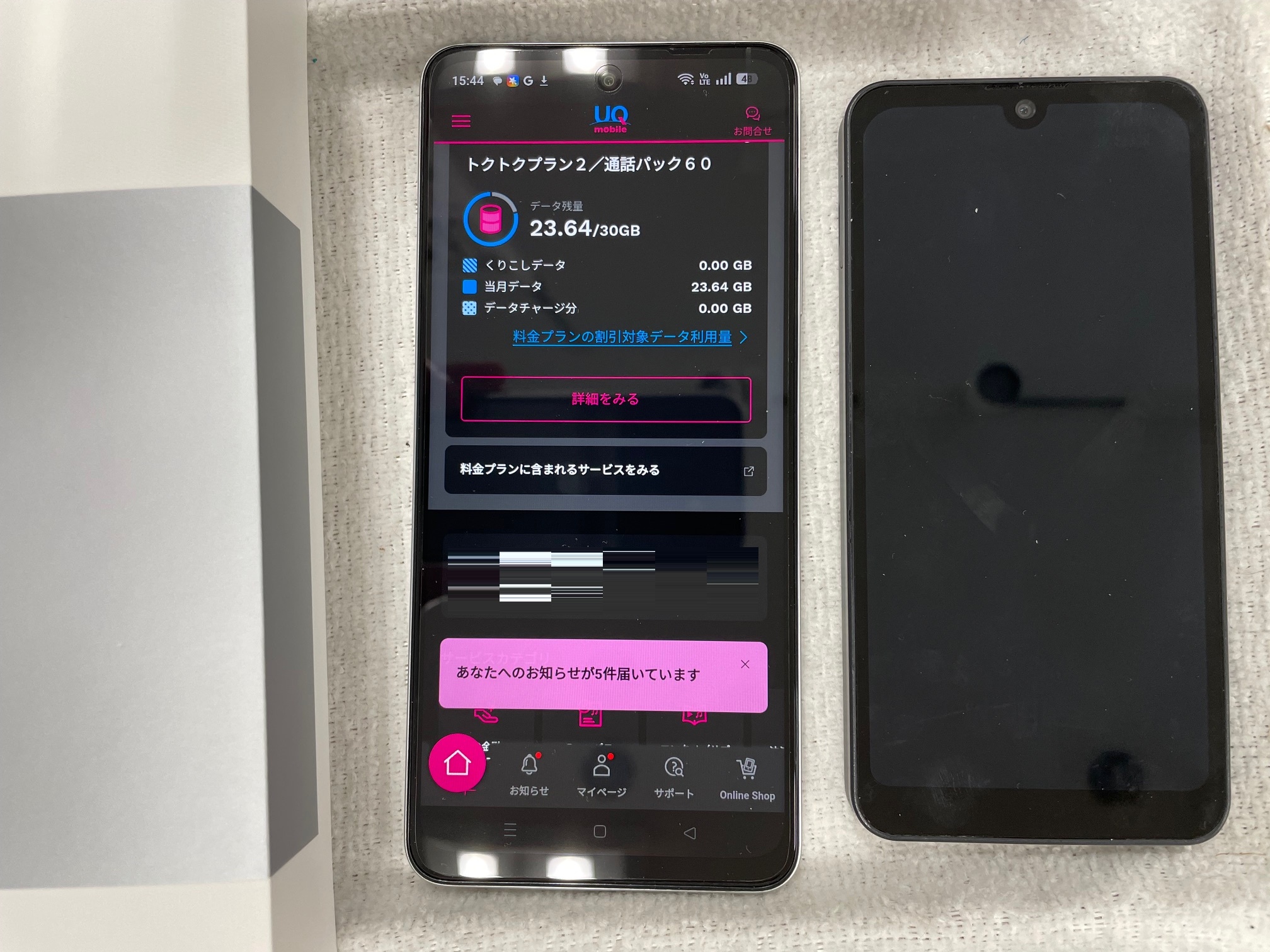 UQ親子応援割適用、データ移行量後お渡しです。