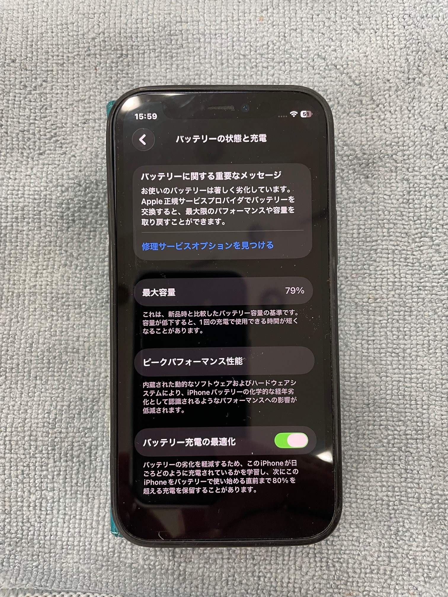 「iPhone12以降はカメラ部品・背面システム」など修理履歴表示されます。