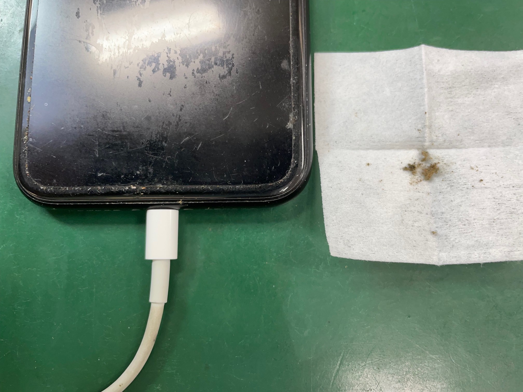慎重に除去すると充電ケーブルがしっかり入るようになりました。