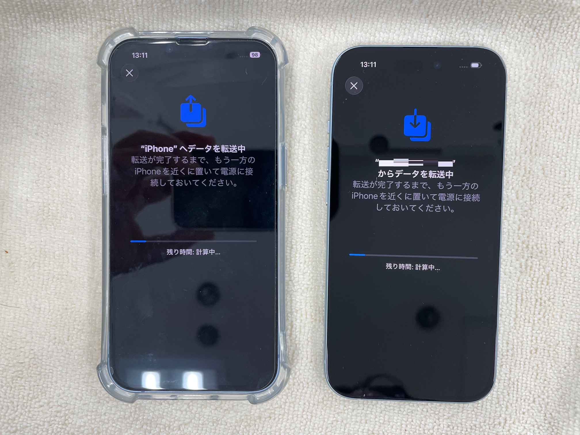 データ移行には安定したWiFi環境が必要です。